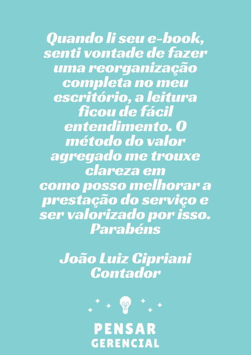 Com o ebook “Valorização dos Serviço Contábil por Meio da Precificação dos Honorários” você aprenderá a precificar os seus serviços contábeis de uma maneira simples e eficaz, através da metodologia do valor agregado.