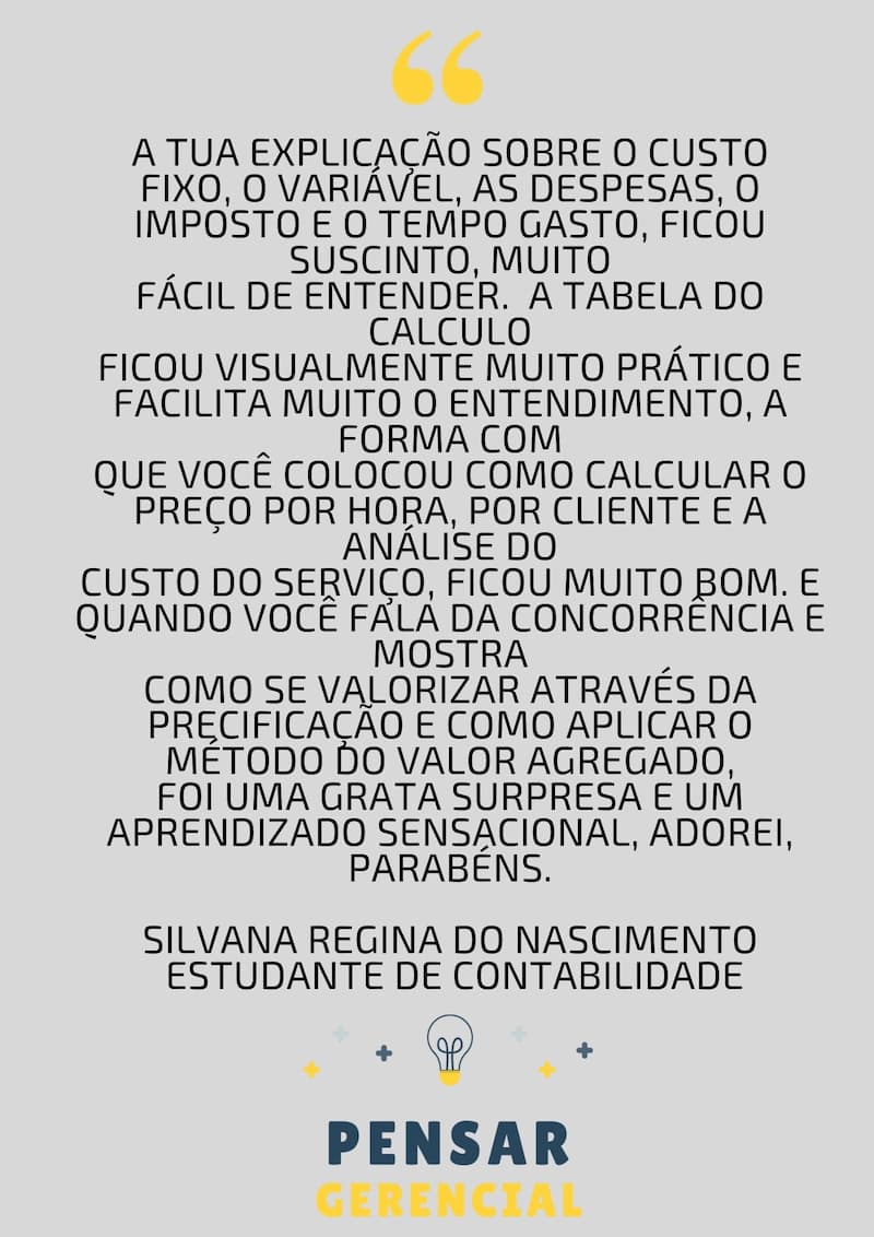 Além disso, devemos considerar também os seus gastos com insumos, folha de pagamento de funcionários, material de limpeza e investimentos feitos para abertura do escritório.